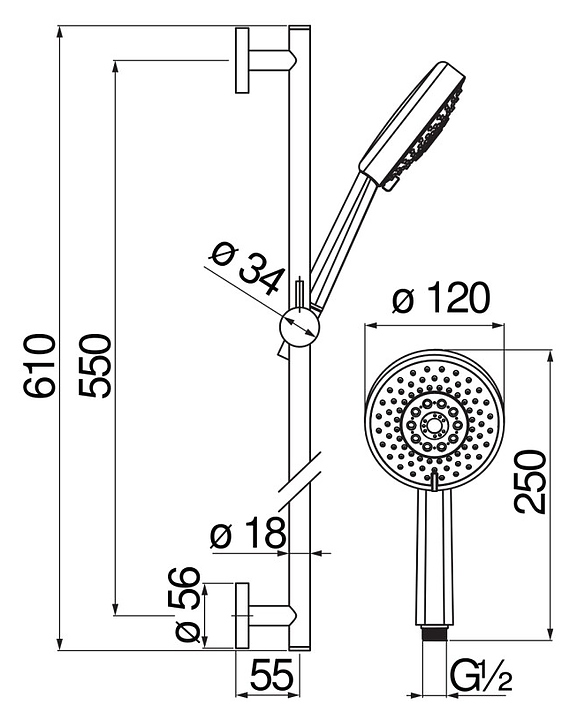 Душевая стойка NOBILI AD140/54BM выполнена в современном стиле и используется в ванных комнатах. Модель оснащена душевой лейкой круглой формы. Комплектация: