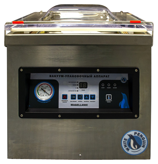 Вакуумный упаковщик White Penguin MAGELLANIC WPC-400T используется на предприятиях общественного питания и торговли для упаковки готовых блюд и пищевых продуктов в герметичную тару для сохранения свежести, предотвращения размножения микроорганизмов и смешивания запахов. Модель оснащена объемной камерой с 2 сварочными пластинами, расположенной сверху откидной крышкой и фирменной панелью управления с функциональными клавишами, цифровым дисплеем, аналоговым вакуумметром и русскоязычным интерфейсом. Корпус выполнен из нержавеющей стали. В комплект поставки входят набор необходимых запчастей и вакуумное масло. Особенности: