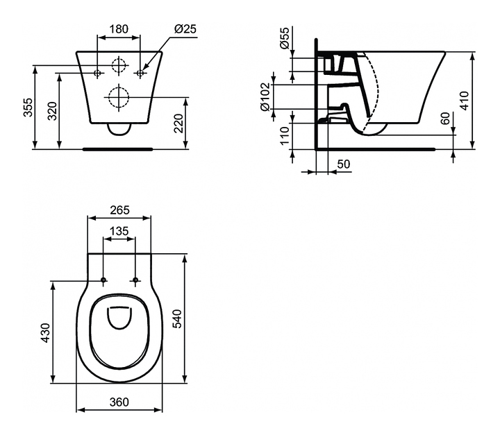 Унитаз подвесной с инсталляцией Ideal Standard Connect Air AquaBlade E005401 3 в 1