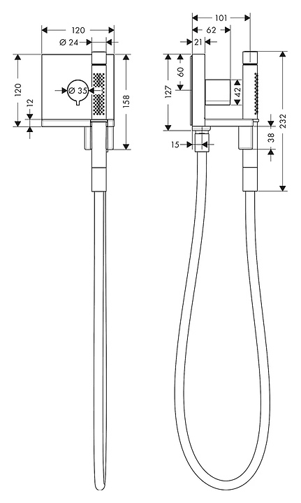 Душевой гарнитур Axor Starck ShowerCollection 10651000 предназначен для использования в ванных помещениях для подачи горячей и холодной воды. Модель оснащена керамическим картриджем, обеспечивающим плавный ход рычага смесителя, контроль и точность при выборе напора и температуры воды. Изделие выполнено из латуни, отличающейся прочностью, долговечностью и устойчивостью к перепадам температур. В комплект поставки входят рукоятка, гильза, металлическая розетка, ручной душ-«палочка» Axor Starck 2jet и шланг с металлическим напылением. Внутренняя часть в комплект поставки не входит и приобретается отдельно. Особенности: