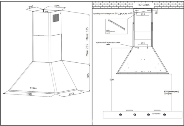 Встраиваемая кухонная вытяжка Korting KHC 6648 RB предназначена для очистки воздуха от продуктов горения, копоти и запахов в процессе приготовления пищи путем принудительной вентиляции в домашних условиях. Модель оснащена механической кнопочной панелью управления, белой подсветкой рабочей зоны при помощи 2 LED ламп и антивозвратным клапаном. Особенности: