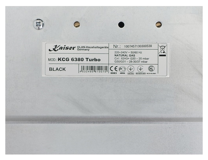 Варочная панель газовая Kaiser KCG 6380 Turbo черное стекло