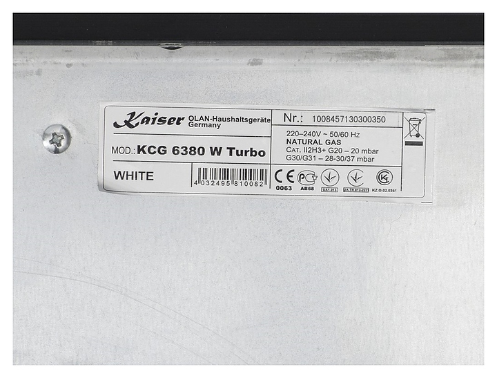Варочная панель газовая Kaiser KCG 6380 W Turbo белое стекло