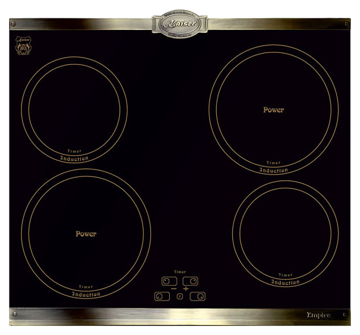 Индукционная варочная панель Kaiser KCT 6395 IEm предназначена для приготовления большого ассортимента блюд в домашних условиях. Принцип работы основан на непосредственном нагреве металлической посуды создаваемыми высокочастотным магнитным полем индуцированными вихревыми токами. Модель оснащена 4 варочными зонами различной мощности с радиальным обозначением, фронтально расположенной сенсорной панелью управления с программатором Logic Control, 5 светодиодными цифровыми дисплеями с индикацией красного цвета и кабелем питания. Рабочая поверхность выполнена из высококачественной ударопрочной стеклокерамики черного цвета с декором массивными горизонтальными металлическими рамками с патиной бронзового оттенка и износостойкой графикой. В комплект поставки входят набор монтажных креплений и скребок для чистки. Особенности: