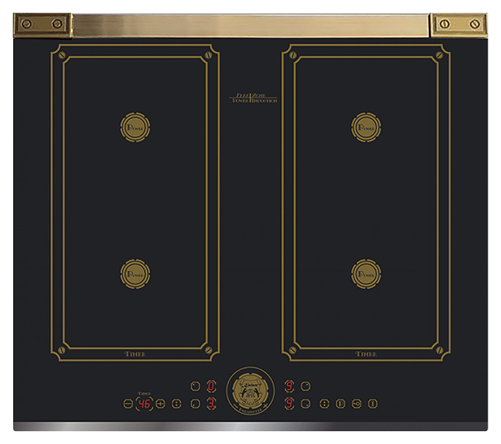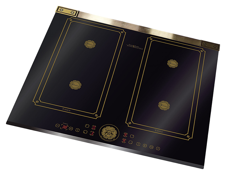 Индукционная варочная панель Kaiser KCT 6745 FI AD предназначена для приготовления большого ассортимента блюд в домашних условиях. Принцип работы основан на непосредственном нагреве металлической посуды создаваемыми высокочастотным магнитным полем индуцированными вихревыми токами. Модель оснащена 4 варочными зонами различной мощности с обозначением прямоугольными контурами, фронтально расположенной сенсорной панелью управления с программатором Intelligent System, 5 светодиодными цифровыми дисплеями с индикацией красного цвета и кабелем питания. Рабочая поверхность выполнена из высококачественной ударопрочной стеклокерамики черного цвета с фацетированной фронтальной кромкой, задней горизонтальной металлической рамкой с патиной бронзового оттенка и износостойкой графикой. В комплект поставки входят набор монтажных креплений и скребок для чистки. Особенности: