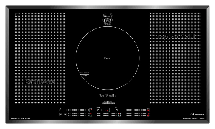 Индукционная варочная панель Kaiser KCT 97 FI La Perle предназначена для приготовления большого ассортимента блюд в домашних условиях. Принцип работы основан на непосредственном нагреве металлической посуды создаваемыми высокочастотным магнитным полем индуцированными вихревыми токами. Модель оснащена 5 варочными зонами различной мощности с обозначением радиальным контуром центральной и прямоугольными контурами с мелкими квадратными штрихами боковых, фронтально расположенной сенсорной панелью управления с программатором Intelligent System, 6 светодиодными цифровыми дисплеями с индикацией красного цвета и кабелем питания. Рабочая поверхность выполнена из высококачественной ударопрочной стеклокерамики Schott (Германия) черного цвета с фацетированной кромкой и износостойкой графикой. В комплект поставки входят набор монтажных креплений и скребок для чистки. Особенности: