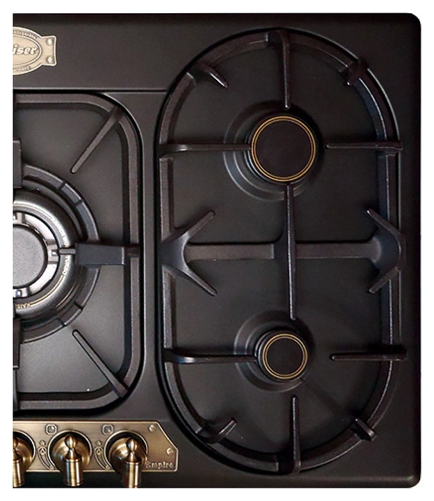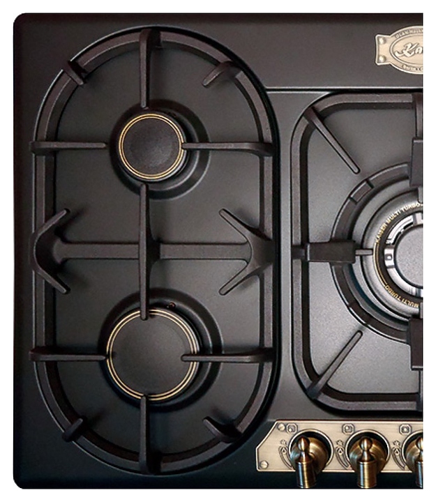 Газовая варочная панель Kaiser KG 9325 Em Turbo предназначена для приготовления большого ассортимента блюд в домашних условиях. Модель оснащена 5 высококачественными конфорками различной мощности, кабелем питания, 3 опорными решетками: 1 – прямоугольной и 2 – овальной формы. Корпус выполнен из стали, рабочая поверхность – из стали с антикоррозийным покрытием эмалью цвета антрацит, решетки, крышки конфорок и адаптер для WOK – из чугуна с черной матовой поверхностью, переключатели и накладка с логотипом – цельнометаллические с патиной оттенка бронзы. В комплект поставки входят набор монтажных креплений, сменные форсунки для балонного газа и адаптер для WOK-посуды. Особенности: