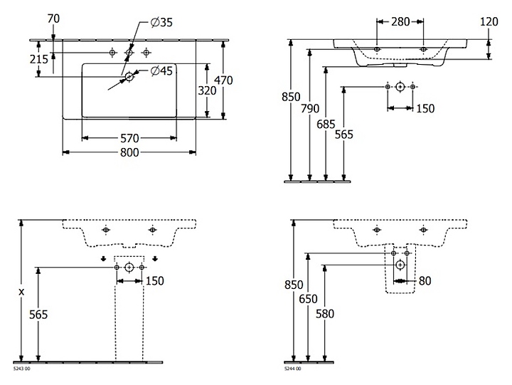 Раковина Villeroy & Boch Subway 3.0 4A708001 80х47 см, керамика