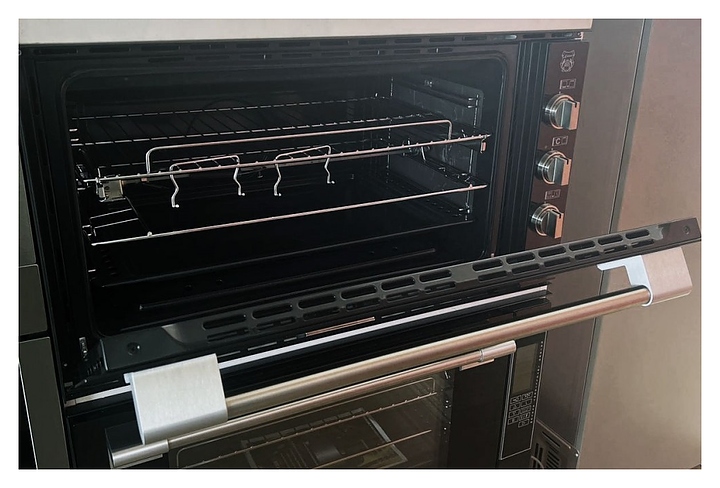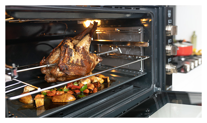 Комбинированный духовой шкаф Kaiser EG 9371 предназначен для приготовления большого ассортимента блюд в домашних условиях. Модель оснащена рабочей камерой с газовой горелкой, электрическим грилем, элетродвигателем с вращающимся приводом, откидной дверью со смотровым окном и длинной горизонтальной рукояткой, кабелем питания, расположенной с правой стороны панелью управления с 3 поворотными переключателями. Корпус выполнен из высококачественной стали, фронт с антикоррозийным покрытием эмалью черного цвета и полным глянцевым остеклением без винтового крепежа, фурнитура – из металла с сатинированной серебристой поверхностью, направляющие, решетка, вертел и подставка – из нержавеющей стали с глянцевой поверхностью, противень – из эмалированного металла. В комплект поставки входят стандартный противень, решетка для емкостей, ухват для противней, вертел, подставка для вертела и сменные форсунки для баллонного газа. . Особенности: