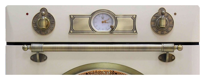 Электрический духовой шкаф Kaiser EH 6355 ElfEm предназначен для приготовления большого ассортимента блюд в домашних условиях. Модель оснащена рабочей камерой с верхним и нижним нагревательными элементами, грилем, расположенными в задней стенке кольцевым нагревателем и вентилятором, откидной дверью со смотровым окном и длинной горизонтальной рукояткой, элетродвигателем с вращающимся приводом, кабелем питания, панелью управления с 2 поворотными переключателями и овальным циферблатом. Корпус выполнен из высококачественной стали, фронт с антикоррозийным глянцевым покрытием эмалью цвета слоновой кости, фурнитура – из массивных цельнометаллических элементов цвета бронзы с декоративным рельефом, направляющие, решетка, вертел и подставка – из нержавеющей стали с глянцевой поверхностью, противни – из эмалированного металла. В комплект поставки входят 2 противня: глубокий и стандартный, решетка для емкостей, ухват для противней, вертел и подставка для вертела. Особенности:
