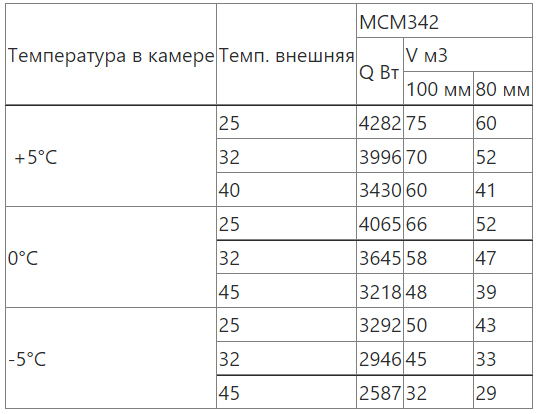 Сплит-системы на объем холодильных камер подобраны при обязательном соблюдении следующих условий эксплуатации: