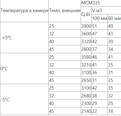 Сплит-системы на объем холодильных камер подобраны при обязательном соблюдении следующих условий эксплуатации: