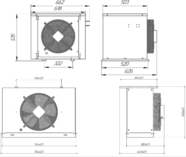 Низкотемпературная сплит-система Intercold LCM 324 FT серии «Стандарт» предназначена для охлаждения и поддержания необходимого температурного режима во внутреннем объеме холодильных камер на предприятиях пищевой промышленности. Модель оснащена внешним блоком с установленным компрессором, пластинчато-трубчатым конденсатором, воздухоохладителем с установленными ТЭНами и вентиляторами, щитом управления с контроллером и силовой частью. Корпус выполнен из окрашенной оцинкованной стали, воздухоохладитель - из алюминия. Для монтажа сплит-систем Вам потребуется: