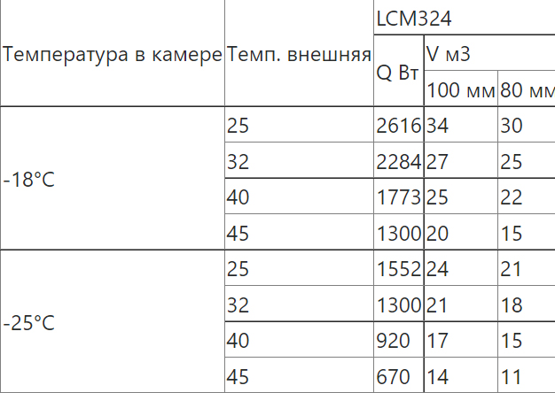 Сплит-системы на объем холодильных камер подобраны при обязательном соблюдении следующих условий эксплуатации: