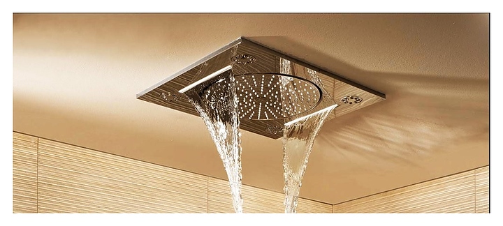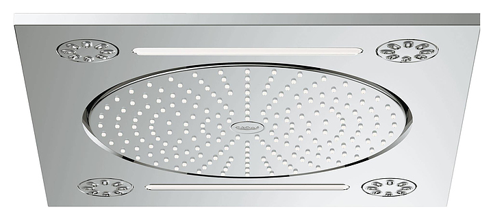 Верхний душ Grohe Rainshower F-Series 27939001 предназначен для использования в ванных комнатах. Модель имеет душевую головку прямоугольной формы и благодаря встроенной функции SpeedClean предотвращения известковых отложений форсунки легко очищаются. Изделие выполнено из латуни, которая отличается прочностью, долговечностью и устойчивостью к перепадам температур. Особенности: