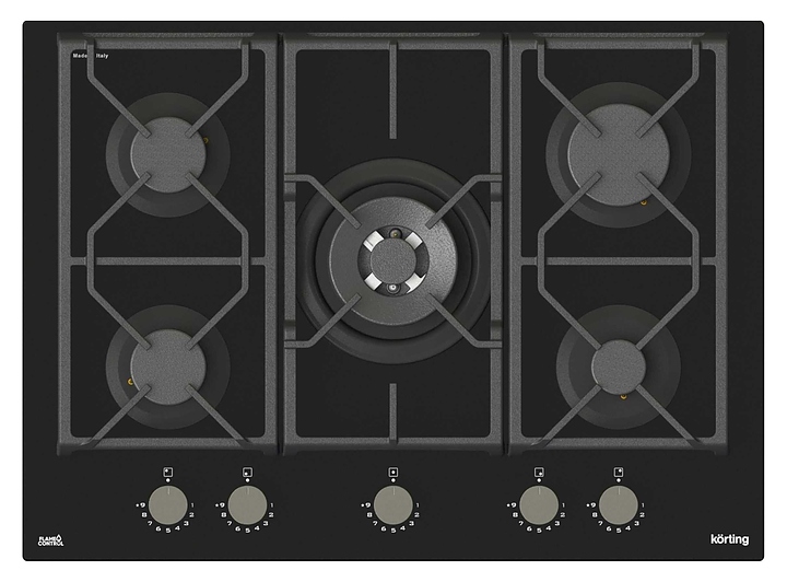 Газовая стеклянная варочная панель Korting HGG 7987 CTN FLC предназначена для приготовления в наплитной посуде большого спектра блюд в домашних условиях. Модель оснащена 5 высококачественными конфорками различной мощности, поворотными регуляторами и кабелем питания. Рабочая поверхность выполнена из стекла, держатели для посуды - из чугуна, переключатели - из металла. В комплект поставки входят подставка WOK, адаптер и жиклеры под сжиженный газ, специальный уплотнитель для установки по периметру прибора. Особенности: