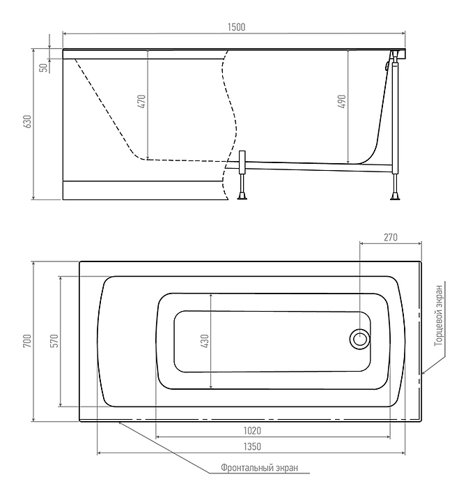 Ванна TIMO RITTA 1570 150х70 см, акрил