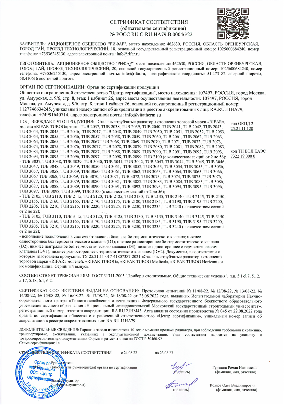 Радиатор Rifar TUBOG TUB 3180-06 серии Classic предназначен для обогрева помещений в жилых и административных зданиях в открытых или закрытых системах отопления, подключенных к внешним теплосетям по зависимой или независимой схемам. Модель состоит из 6 секций трубчатого типа. Секции выполнены из высококачественной стали методом холодной штамповки с износостойким антикоррозийным покрытием белого цвета (RAL 9016), кронштейны – из алюминиевого сплава, компоненты нижнего подключения – из АБС-пластика, упаковка – из полиэтилена и гофрокартона. Комплектация: