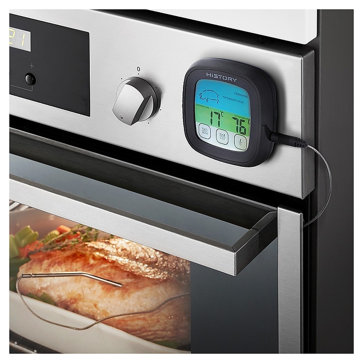 Электронный термощуп HiSTORY ICT-D01 используются совметсно с грилем IG-D725 в частных домах и квартирах для измерения температуры и определения готовности мяса, рыбы, птицы и других продуктов при готовке, а также при пастеризации и разморозке в частных домах и квартирах. Модель оснащена информативным LED-дисплеем с тач-скрином, откидной ножкой установки, магнитами на корпусе и термостойким шнуром с щупом. Корпус выполнен из пластика, щуп - из стали. Внимание! Батарейки в комплект поставки не входят и приобретаются отдельно. Особенности: