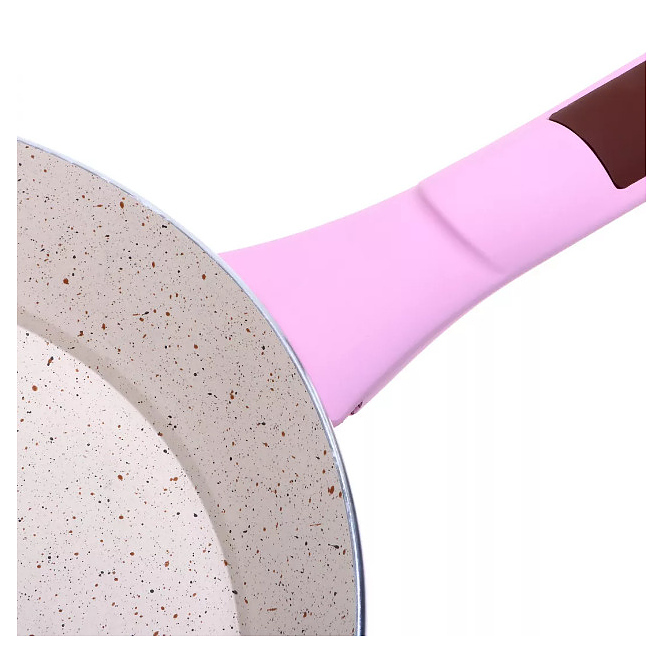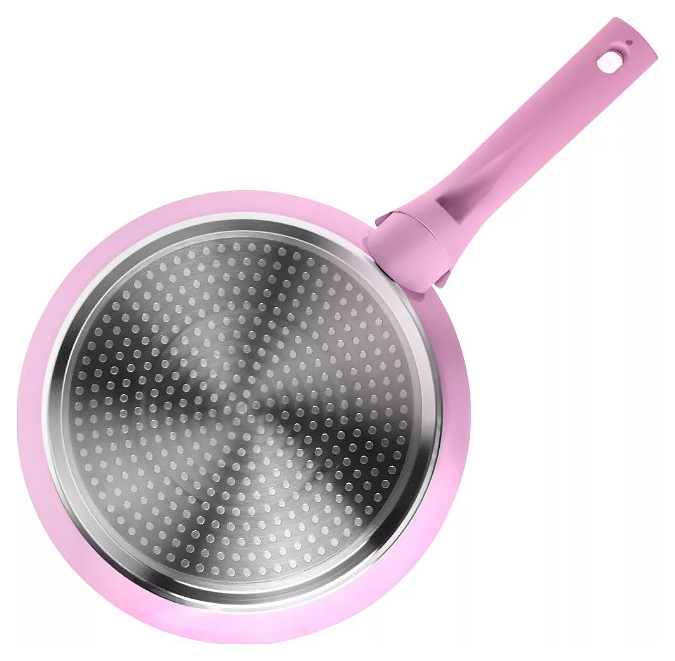 Сковорода Kitchenstar SYB-L117AK-0124I серии Lollipop предназначена для приготовления широкого ассортимента блюд на любых типах варочных поверхностей, включая индукционные, на предприятиях общественного питания и торговли, а также в домашних условиях. Модель оснащена круглым дном, расширенными кверху стенками и длинной фиксированной рукояткой с отверстием для подвешивания. Корпус выполнен из алюминия с поверхностью розового цвета, рукоятка – из бакелита розового цвета с коричневой накладкой, форма для яичницы – из полимера розового цвета в виде заячьей мордочки. В комплект поставки входит форма для яичницы. Особенности:
