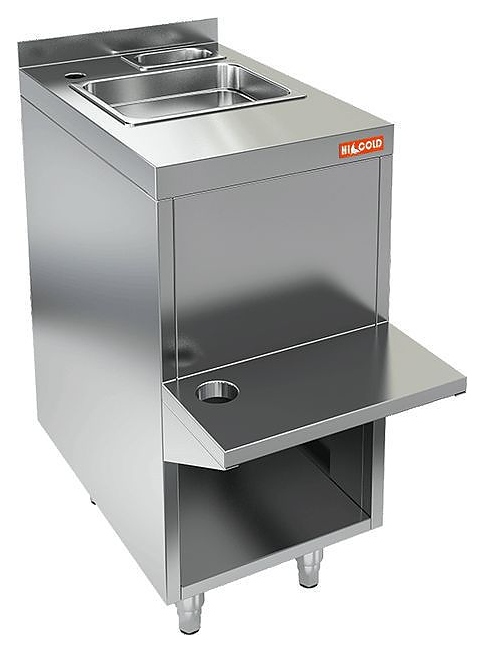 Пристенный стол HICOLD НБМБП-4/5Б предназначен для комплектации модульных барных стоек на предприятиях общественного питания и торговли. Модель оснащена закрытым отделением, рукомойником, фронтально расположенной полкой под блендер, столешницей с задним бортом и устойчивыми опорами. Корпус и столешница выполнены из высококачественной нержавеющей стали AISI 430, столешница усилена ребрами жесткости. Изделие поставляется в сборе. Особенности: