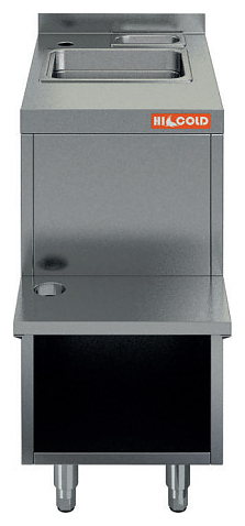Пристенный стол HICOLD НБМБП-4/6Б предназначен для комплектации модульных барных стоек на предприятиях общественного питания и торговли. Модель оснащена закрытым отделением, рукомойником, фронтально расположенной полкой под блендер, столешницей с задним бортом и устойчивыми опорами. Корпус и столешница выполнены из высококачественной нержавеющей стали AISI 430, столешница усилена ребрами жесткости. Изделие поставляется в сборе. Особенности: