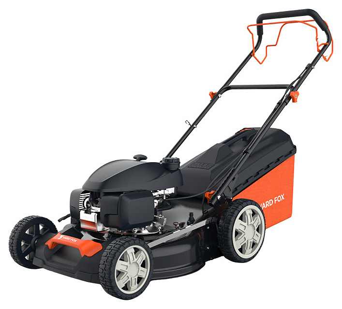 Бензиновая газонокосилка YARD FOX 51SH предназначена для кошения травы на частных приусадебных участках и придомовых территориях. Модель оcнащена высокоэффективным 4-тактным одноцилиндровым двигателем внутреннего сгорания Honda GCV170 (Япония), съемным травосборником, фронтальным бампером, дугообразной ведущей рукояткой и 4 колесами. Корпус режущей деки выполнен из стали, ведущая рукоятка – из трубчатого стального профиля с антикоррозийным покрытием черного цвета, травосборник – из износостойкой ткани оранжевого цвета, дефлектор бокового выброса, крышка травосборника и элементы кожуха – из ударопрочного черного пластика, цилиндр двигателя – из алюминия, фронтальная рукоятка, ручки рычагов и фиксаторы – из оранжевого пластика. Особенности: