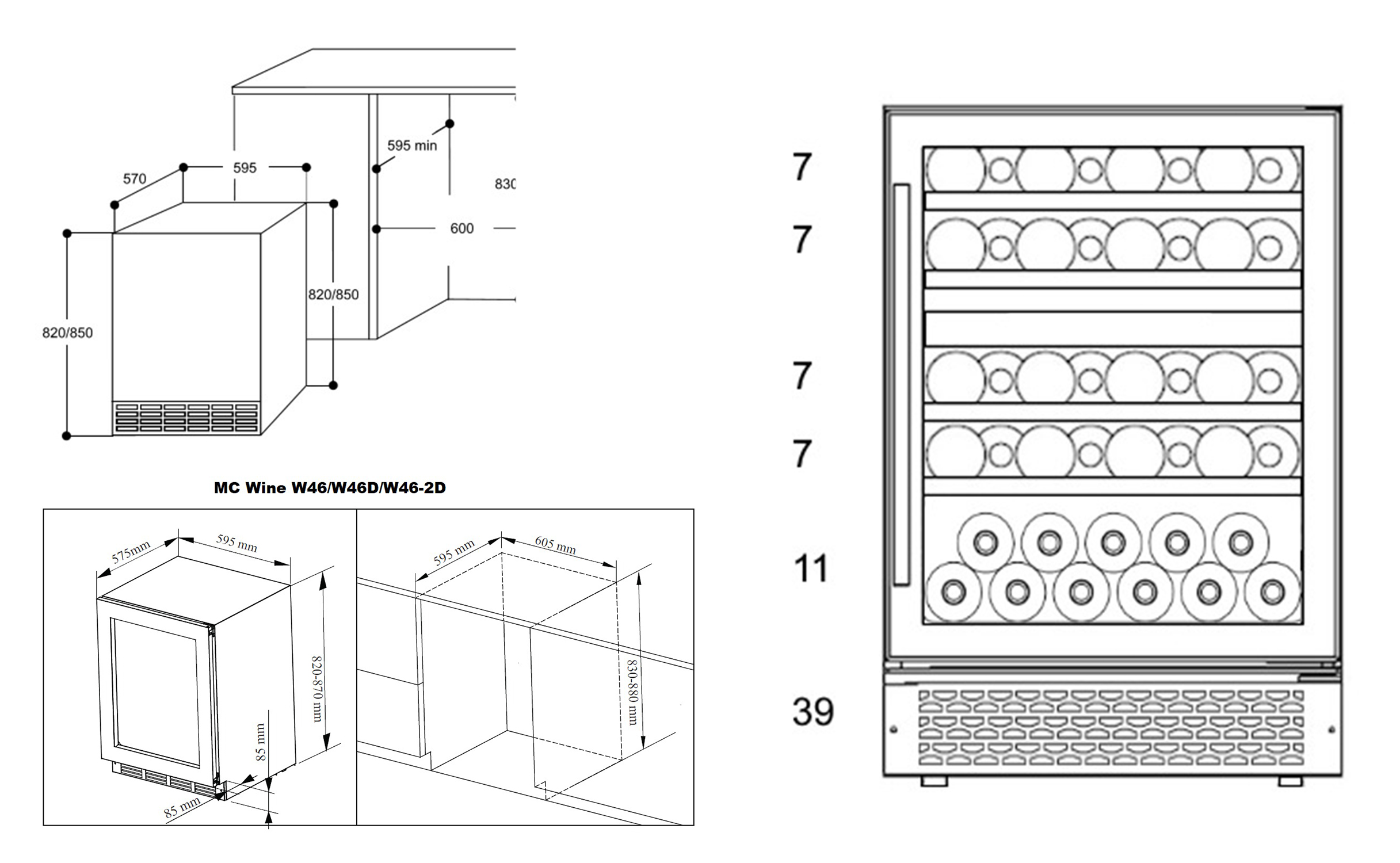 Винный шкаф MC Wine W46DS предназначен для кратковременного хранения вина при определенном уровне влажности и температуры в ресторанах, специализированных магазинах, отелях, подсобных складских помещениях, в частных домах или квартирах и подготовки вина к подаче на стол. Модель оснащена сенсорным цифровым дисплеем и циферблатом, белой светодиодной подсветкой, светодиодным индикатором температуры, регулируемыми по высоте ножками и трубчатой ручкой. Дверь выполнена из двухслойного низкоэмиссионного стекла с УФ-защитой, бесшовная рама и ручка - из нержавеющей стали, полки - из бука. Особенности: