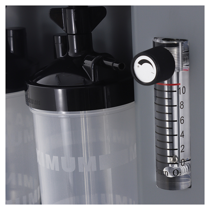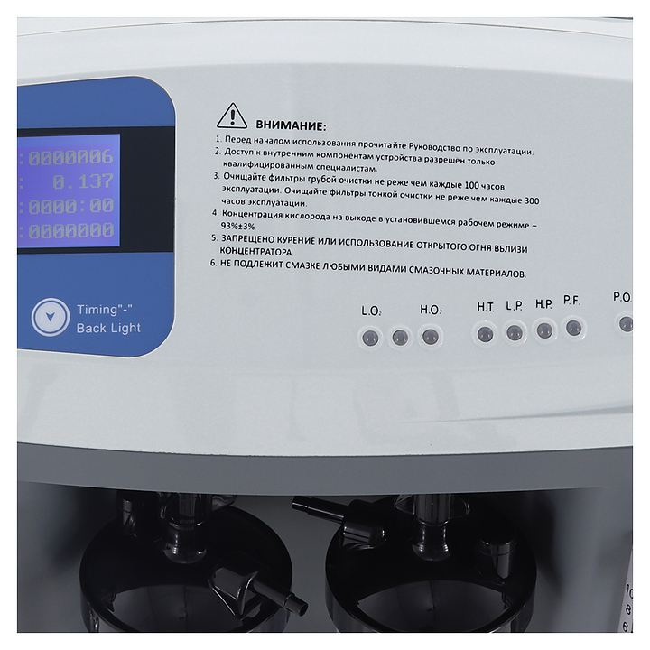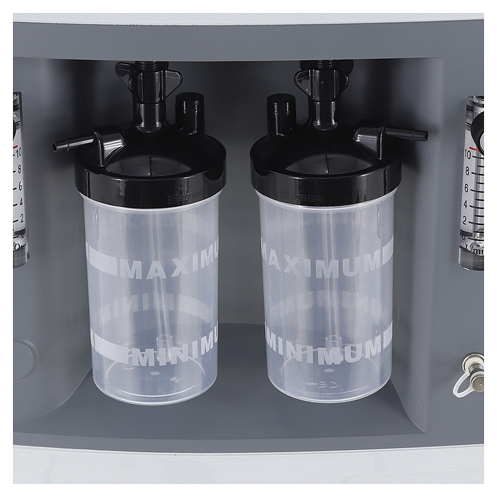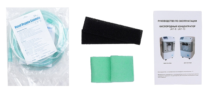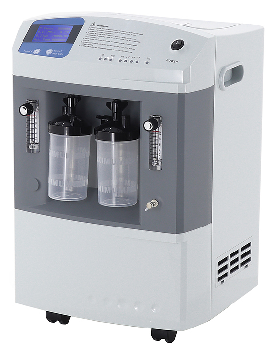 Концентратор кислорода с функцией небулайзера Med-Mos Longfian JAY-10 двухпоточный с РУ используется в домашних условиях и в медицинских учреждениях для выработки концентрированного медицинского кислорода из обычного атмосферного воздуха и для мелкодисперсного распыления (функция небулайзера). Воздух из помещения поступает в концентратор, очищается, проходя через систему фильтрации, после чего сжимается и при переменном давлении подается на одну из двух колонок, наполненных адсорбентом – так называемое «молекулярное сито». Молекулярное сито поглощает азот и примеси, но беспрепятственно пропускает кислород. В результате данного процесса концентрация О2 на выходе из аппарата возрастает до 90 %. Модель оснащена ЖК-дисплеем, встроенными фильрами и 4 самоориентирующимися колесами. Прибор поставляется с регистрационным удостоверением. Комплектация: