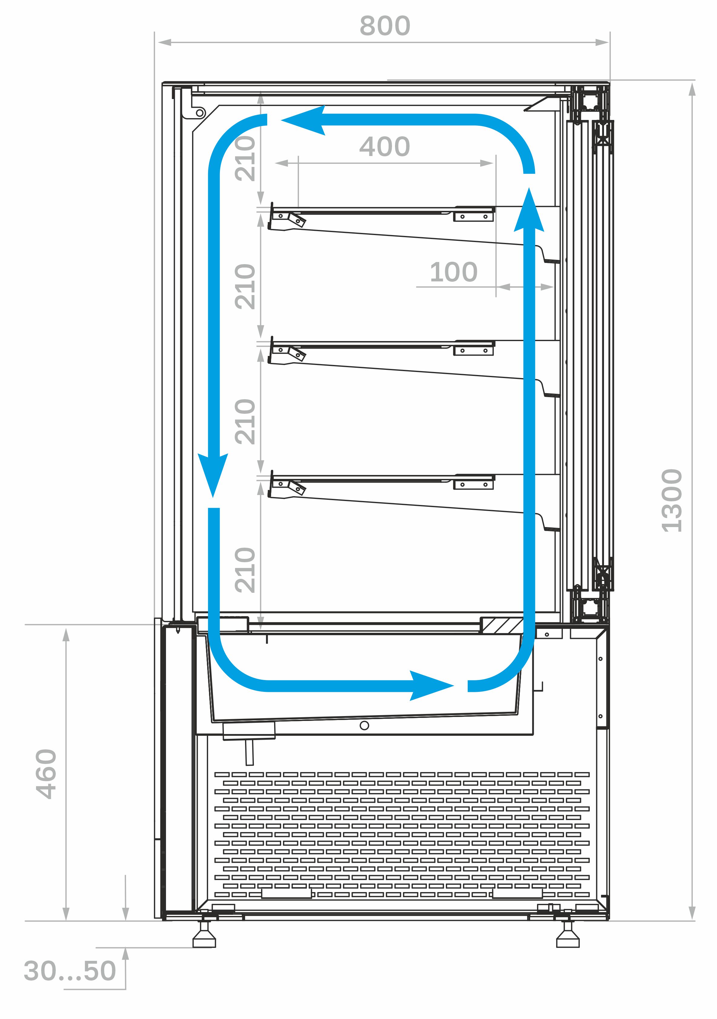 Кондитерская витрина самообслуживания Carboma KC78-130 VV 0,9-2 (self, оргстекло) серии Cosmo используется на предприятиях общественного питания и торговли для демонстрации и кратковременного хранения напитков, тортов, пирожных и других кондитерских изделий и гастрономических товаров. Модель оснащена 3 регулируемыми по уровню стеклянными полками со встроенными ценникодержателями и регулируемыми ножками от 30 до 50 мм. Корпус выполнен из стали и пластика, термоизоляция корпуса - из пенополиуретана, базовая выкладка - из матового стекла, остекление - из структурного стеклопакета, фронт - из оргстекла. Особенности: