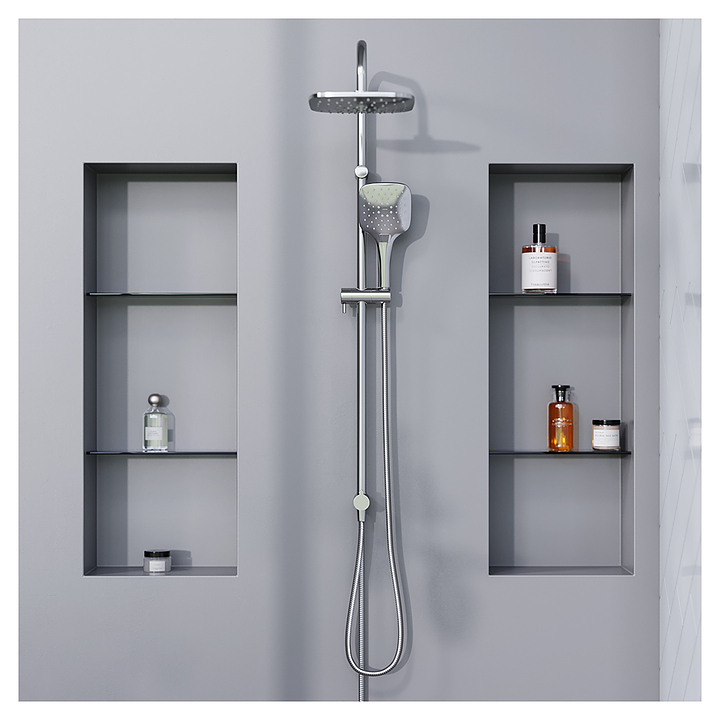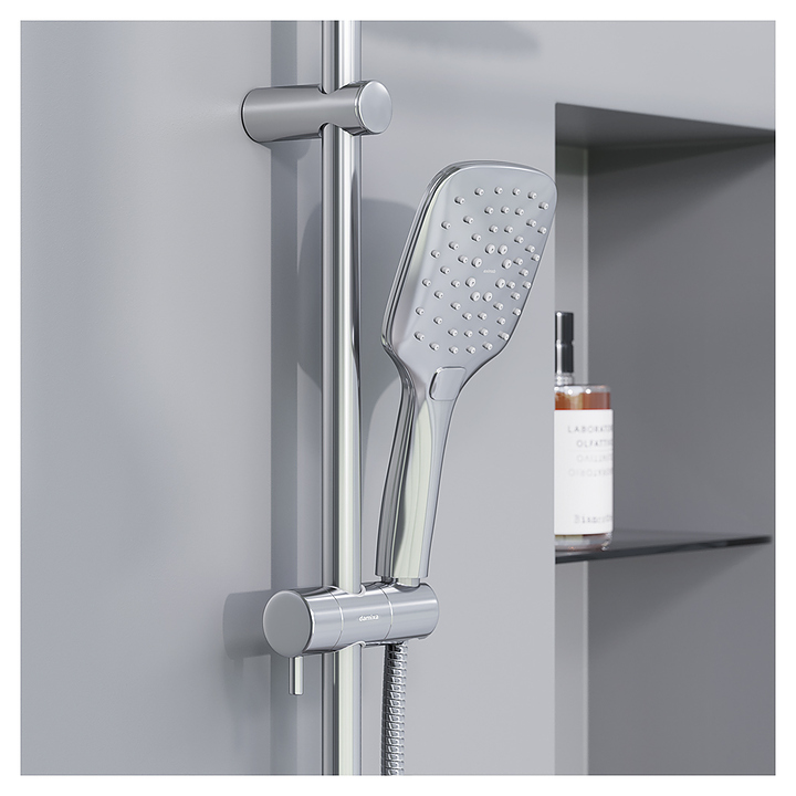 Душевая система Damixa Origin Evo 978200000 используется в ванных комнатах. Модель оснащена тропическим верхним душем, душевой штангой, ручной лейкой с душевым шлангом и держателем лейки. Изделие выполнено из латуни, которая отличается прочностью, долговечностью и устойчивостью к перепадам температур. В комплект поставки входят смеситель для душа, штанга, верхний душ, ручной душ, шланг для ручного душа и переключатель потоков. Особенности: