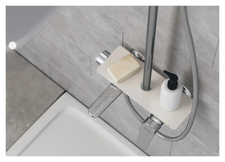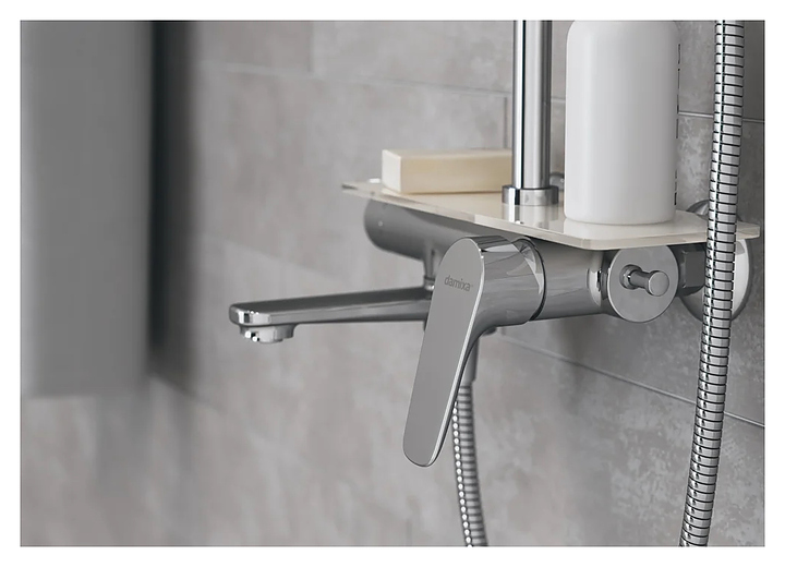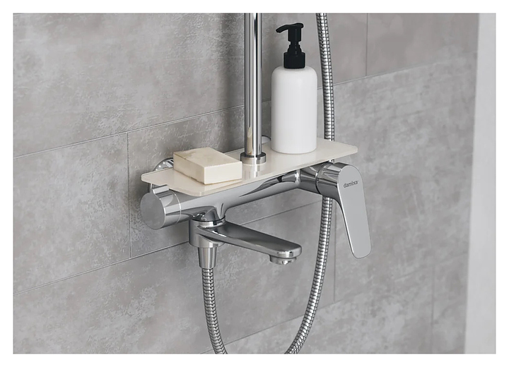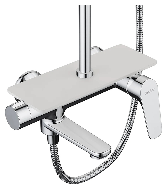 Душевая система Damixa Origin Bit 977720000 с полочкой, хром, молочный