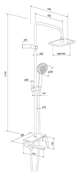 Душевая система Damixa Origin Bit 977720000 используется в ванных комнатах. Модель оснащена смесителем, поворотным изливом, прямоугольным тропическим верхним душем, душевой штангой, полочкой, ручной лейкой с душевым шлангом и держателем лейки, керамическим картриджем, обеспечивающим плавный ход рычага смесителя, контроль и точность при выборе напора и температуры воды, а также аэратором для создания мягкой ровной струи без разбрызгивания. Изделие выполнено из нежавеющей стали, пластика и латуни, которая отличается прочностью, долговечностью и устойчивостью к перепадам температур. В комплект поставки входят штанга, верхний душ, ручной душ, шланг для ручного душа и переключатель потоков. Особенности: