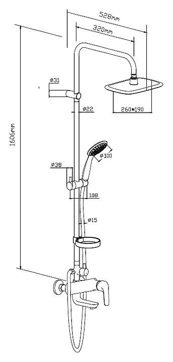 Душевая система Damixa Palace Evo 974230000 используется в ванных комнатах. Модель оснащена поворотным изливом, мыльницей, прямоугольным тропическим верхним душем, душевой штангой, круглой ручной лейкой с душевым шлангом и держателем лейки, а также керамическим картриджем, обеспечивающим плавный ход рычага смесителя, контроль и точность при выборе напора и температуры воды, а также аэратором для создания мягкой ровной струи без разбрызгивания. Изделие выполнено из латуни, отличающейся прочностью, долговечностью и устойчивостью к перепадам температур. В комплект поставки входят смеситель, излив, мыльница, душевая штанга, верхний душ, ручной душ и шланг для ручного душа. Особенности: