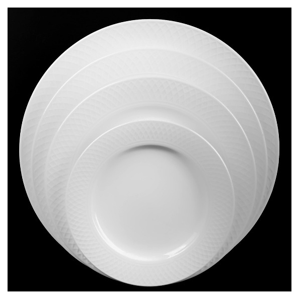 Мелкая тарелка Corone White LQ-QK15078D предназначена для профессионального использования в ресторанах. Модель имеет круглую форму и орнамент по краям. Посуда изготавливается из белого фарфора. Особенности: