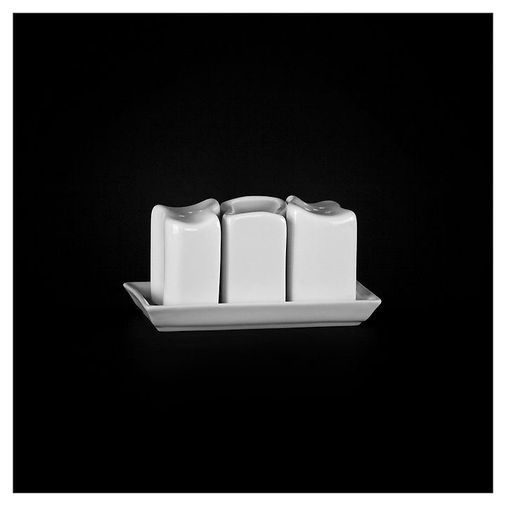 Набор для специй Chan Wave Classic ivory LQ-QSP0003/2, LQ-QX0006 предназначен для профессионального использования в ресторанах. Набор состоит из 3 предметов для соли, перца и зубочисток, имеющих форму волны. Предметы сервировки изготавливаются из твердого фарфора приятного молочного оттенка. Утолщенные края препятствуют образованию сколов, а устойчивая к истиранию глазурь предотвращает появление темных полос. Особенности: