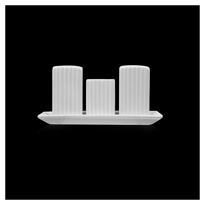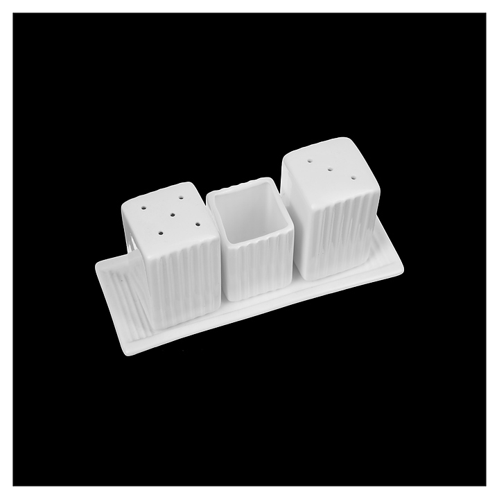 Набор для специй Chan Wave Quadro ivory LQ-QSP0002/2, LQ-QX0004 предназначен для профессионального использования в ресторанах. Предметы сервировки изготавливаются из твердого фарфора приятного молочного оттенка. Утолщенные края препятствуют образованию сколов, а устойчивая к истиранию глазурь предотвращает появление темных полос. Особенности: