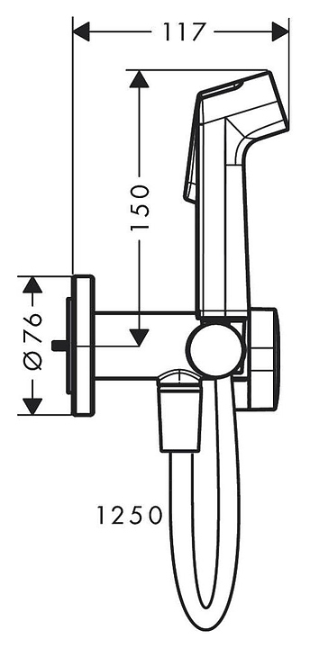 Гигиенический душ Hansgrohe HG Bidette 1jet S 29232000 предназначен для использования в туалетных комнатах для проведения гигиенических процедур. Модель оснащена лейкой, пластиковым душевым шлангом с защитой от перекручивая и держателем для душа. Хромированное настенное крепление выполено из металла. Скрытая часть в комплект поставки не входит и приобретается отдельно. Особенности: