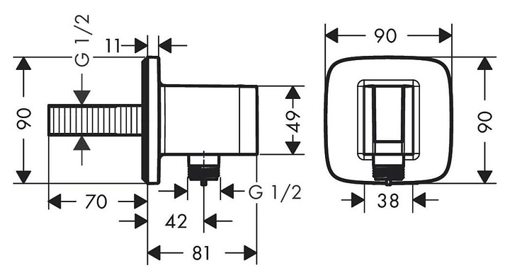 Шланговое подсоединение Hansgrohe HG Fixfit Q 26887990 с держателем душа, полированное золото