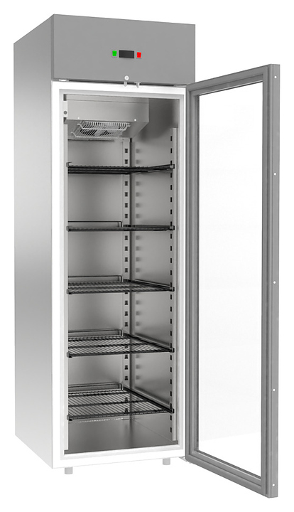 Холодильный шкаф ARKTO D0.7–G предназначен для охлаждения и кратковременного хранения скоропортящихся продуктов и напитков на предприятиях общественного питания и торговли. Модель оснащена электронным терморегулятором, распашной дверцей с замком и 5 полками. Корпус выполнен из нержавеющей стали. Особенности: