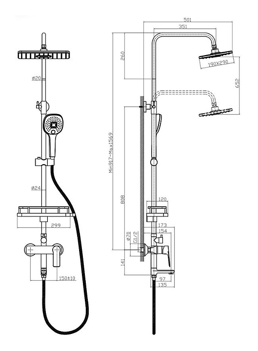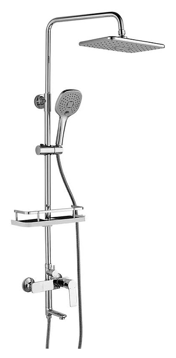 Душевая стойка Rossinka RS27-46 используется в ванных комнатах. Модель оснащена полочкой для размещения аксессуаров, прямоугольным верхним душем и квадратной лейкой. Керамический картридж обеспечивает плавный ход рычага смесителя, контроль и точность при выборе напора и температуры воды. Аэратор уменьшает шум, снижает количество брызг и оснащен функцией легкой очистки. Изделие выполнено из латуни, которая отличается прочностью, долговечностью и устойчивостью к перепадам температур, рукоятка - из металла, аэратор - из пластика. В комплект поставки входят шланг, лейка, крепление для лейки и эксцентрики с отражателями. Особенности: