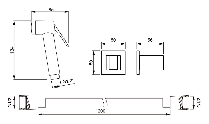 Гигиенический душ TIMO SG-3054/03 предназначен для использования в туалетных комнатах. Лейка выполнена из латуни и пластика, держатель и шланг - из латуни. В комплект поставки входят лейка гигиенического душа, держатель и шланг. Дополнительные характеристики: