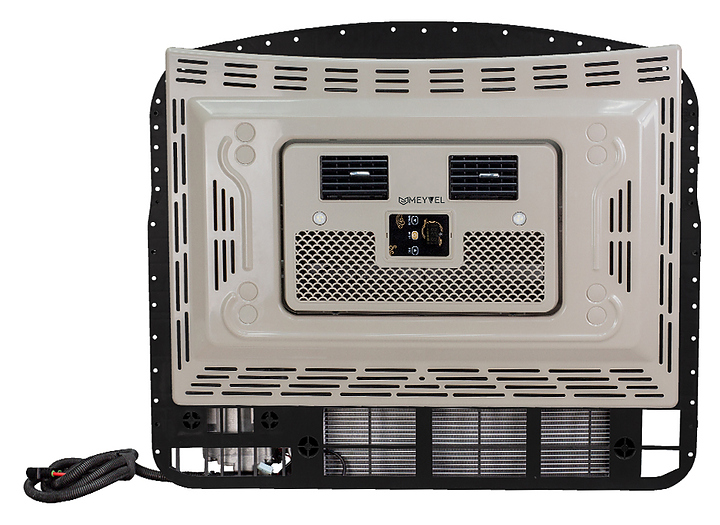 Автономный кондиционер MEYVEL AC-24MB3000 предназначен для создания комфортных климатических условий в грузовом транспорте, спецтехнике, автобусах, трамваях, катерах и яхтах, а также в автодомах и кемперах. Модель состоит из наружного блока, внутреннего блока, электронной панели управления, предназначенной для полного контроля за параметрами кондиционера и переключения режимов и пульта дистанционного управления. Корпус выполнен из долговечного пластика. Особенности: