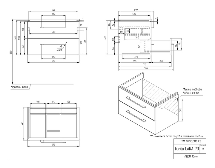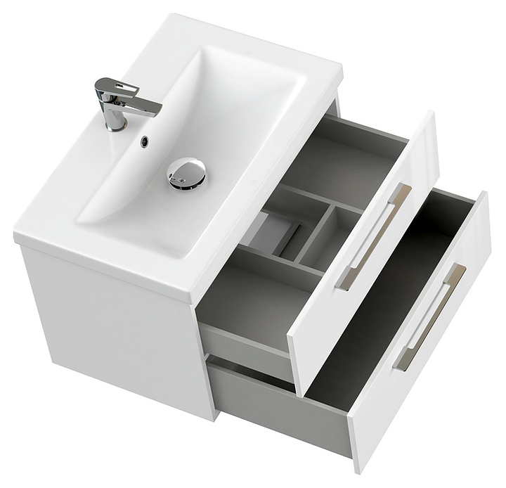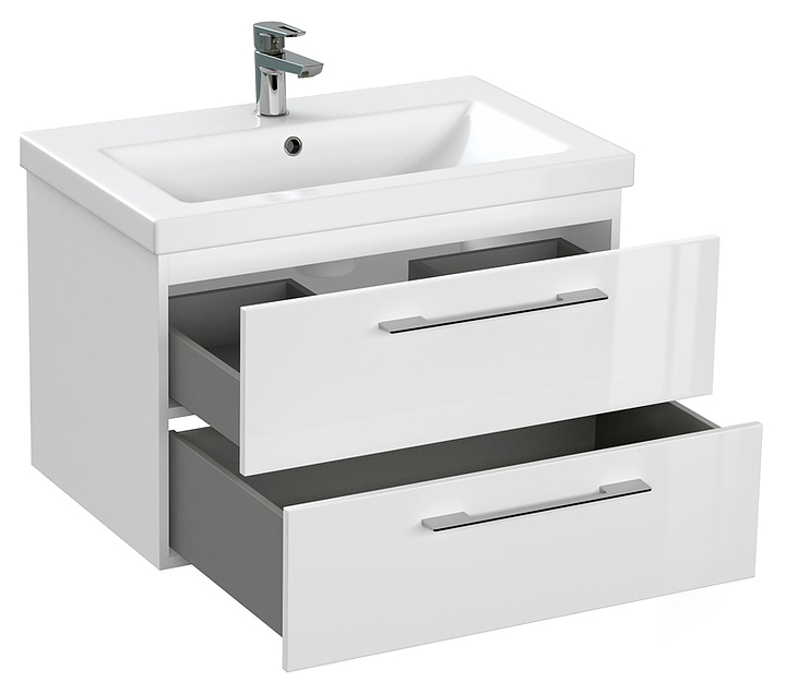 Тумба под раковину Cersanit LARA 70 дополнит интерьер ванной комнаты. Благодаря подвесной конструкции модель не занимает много места, что позволяет экономить пространство и облегчает уборку. Тумба оснащена регулируемым подвесным механизмом и 2 выдвижными ящиками с доводчиком. Корпус выполнен из ЛДСП, фасад - из МДФ. Эмалевое покрытие придает мебели блеск и водоотталкивающие свойства, повышает устойчивость к перепадам температуры и механическому воздействию. Тумба используется с раковиной COMO 70.