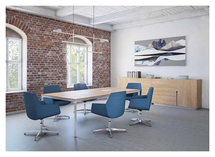 Конференц-стол Norden OL-30-01.GN.AL используется в офисных помещениях в составе линейки кабинета руководителя Оliver или отдельно. Столешница выполнена из ЛДСП производства компании EGGER, опоры - из алюминиевого металлокаркаса. Особенности: