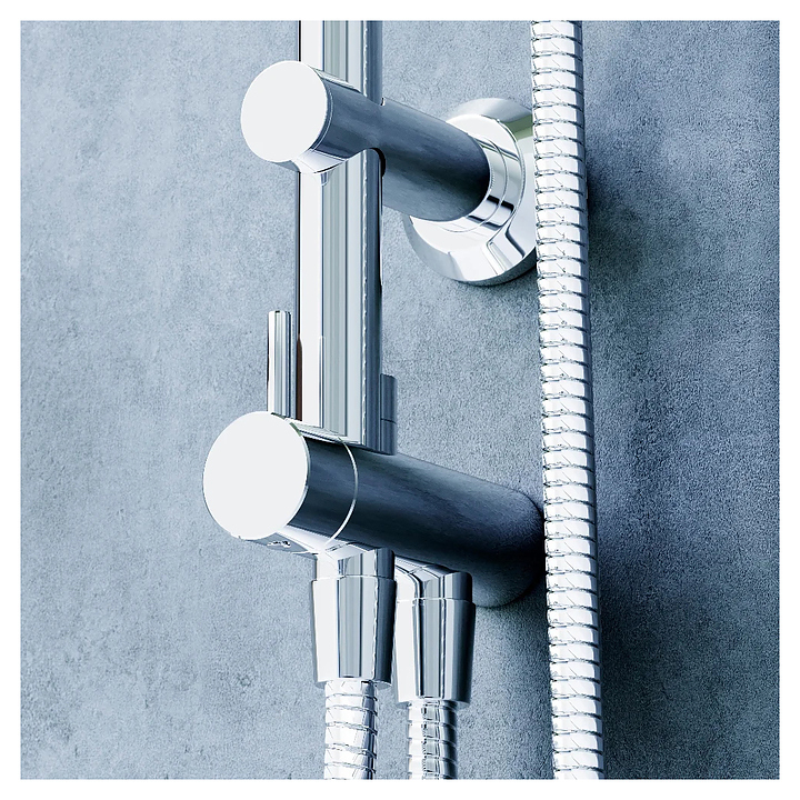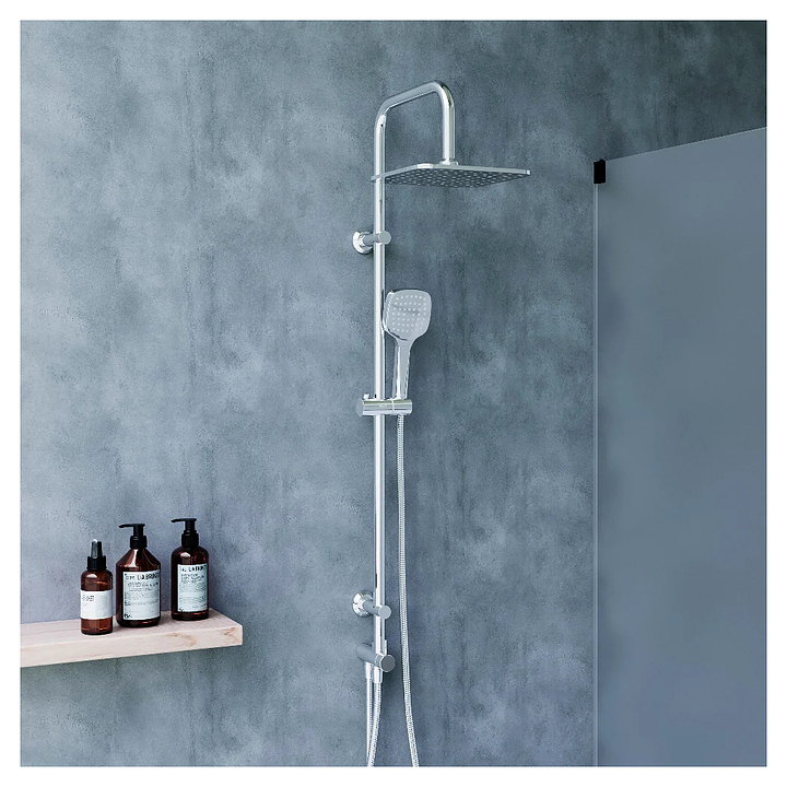 Душевая стойка Dorff Norma new D0712000 выполнена в современном стиле и предназначена для использования в ванных комнатах. Модель оснащена квадратным верхним тропическим душем, квадратным ручным душем и душевым шлангом с защитой от перекручивания, душевой штангой и регулируемым по высоте держателем для ручной лейки. Изделие выполнено из пластика и латуни, отличающейся прочностью, долговечностью и устойчивостью к перепадам температур. Комплектация: