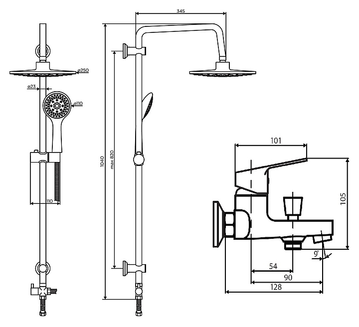 Стойка душевая со смесителем Dorff Norma D0711010 хром