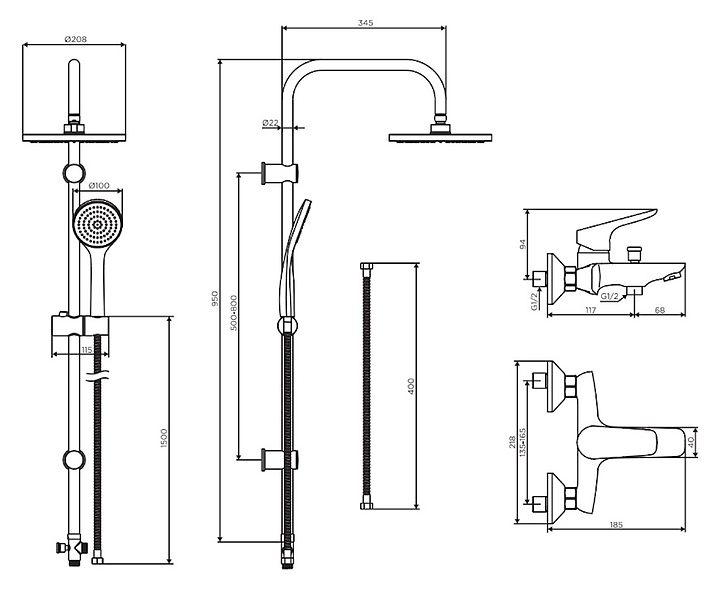 Стойка душевая со смесителем Dorff Comfort D0708010BL черный