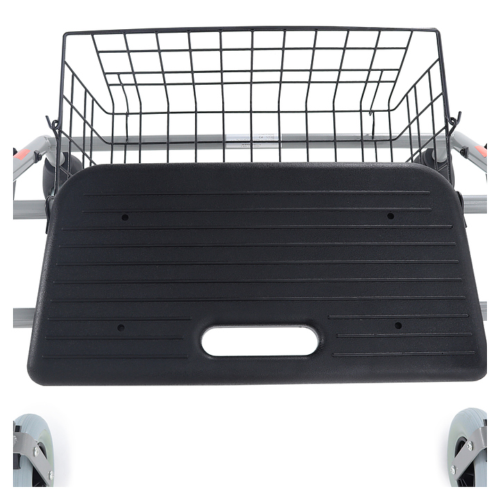 Роллатор Med-Mos 181.30 c РУ используются в учреждениях здравоохранения, реабилитационных центрах, в домашних условиях и на улице для поддержки при ходьбе пациентов с нарушениями опорно-двигательного аппарата и в процессе реабилитации после травм и хирургических операций на нижних конечностях. Модель оснащена регулируемыми по высоте рукоятями, сиденьем, ручным тормозом, съемной подвесной корзиной и 4 колесами. Рама выполнена из стальной трубы, покрытой эпоксидной эмалью, рукояти - из стальной трубы, съемное сиденье - из высокопрочного пластика, полка - из прозрачного пластика. Роллатор поставляется с регистрационным удостоверением Минздрава РФ. Особенности:
