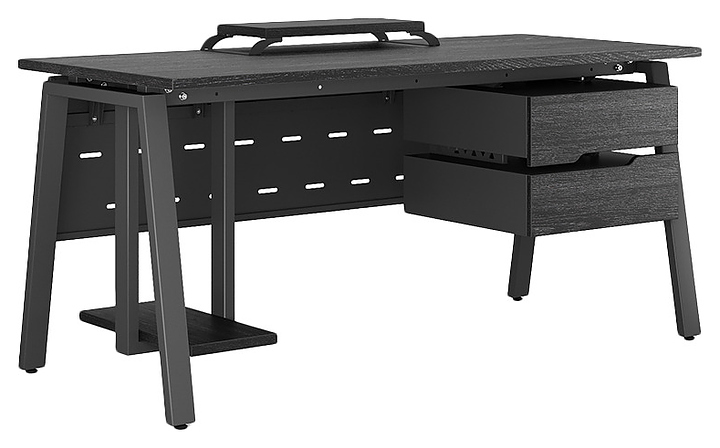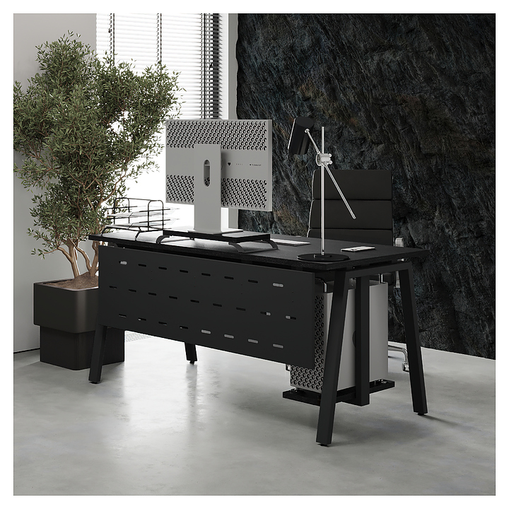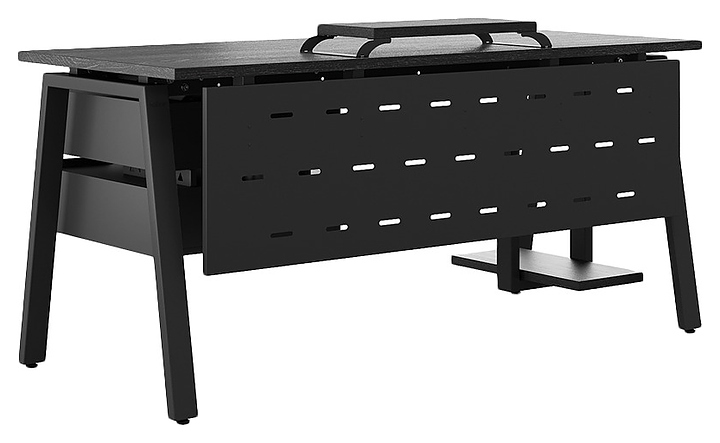 Офисный стол Кобор A-180/70 black/glazed используется в офисных помещениях и кабинетах руководителей. Модель оснащена A-образными опорами. Каркас выполнен из металла, выкрашенного в цвет черный муар (RAL9005), столешница – из ламинированной древесно-стружечной плиты (ЛДСП) цвета черный дуб (H3178 ST37). Опции (заказываются отдельно):